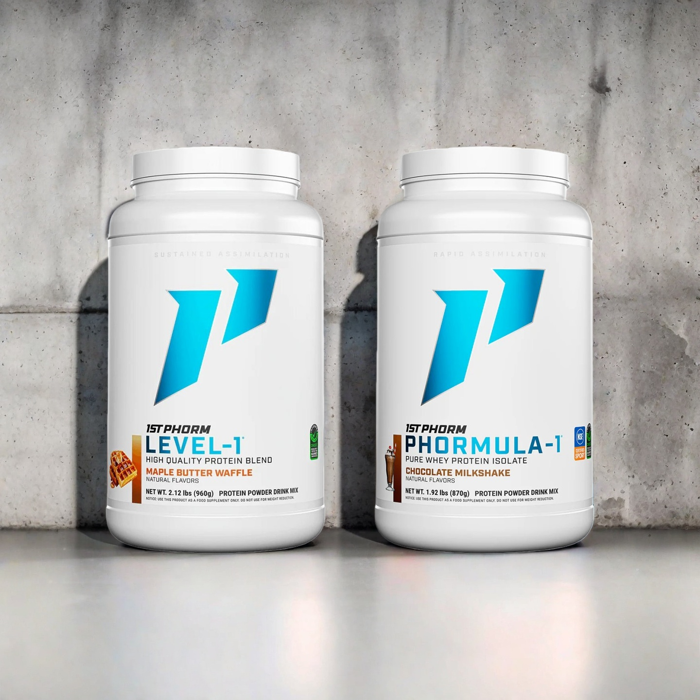 Level-1 is a sustained assimilation protein whereas Phormula-1 is a rapid assimilation protein. This means Level-1 is going to break down and absorb over the course of 2-3 hours, while Phormula-1 is designed to break down and absorb quickly. That's why Level-1 is most ideal to take for extra protein throughout the day, and Phormula-1 is most ideal to take after your workouts for recovery.